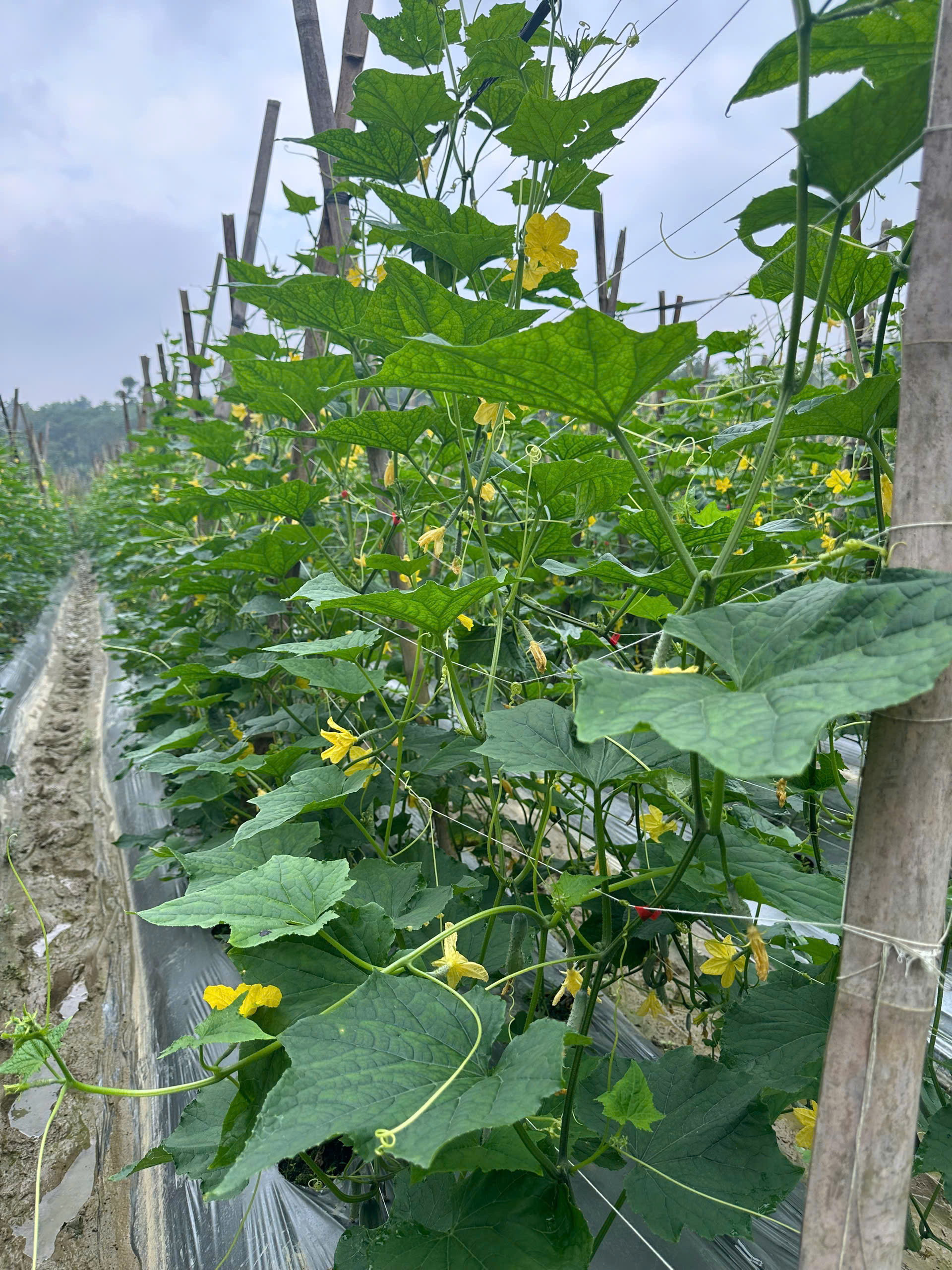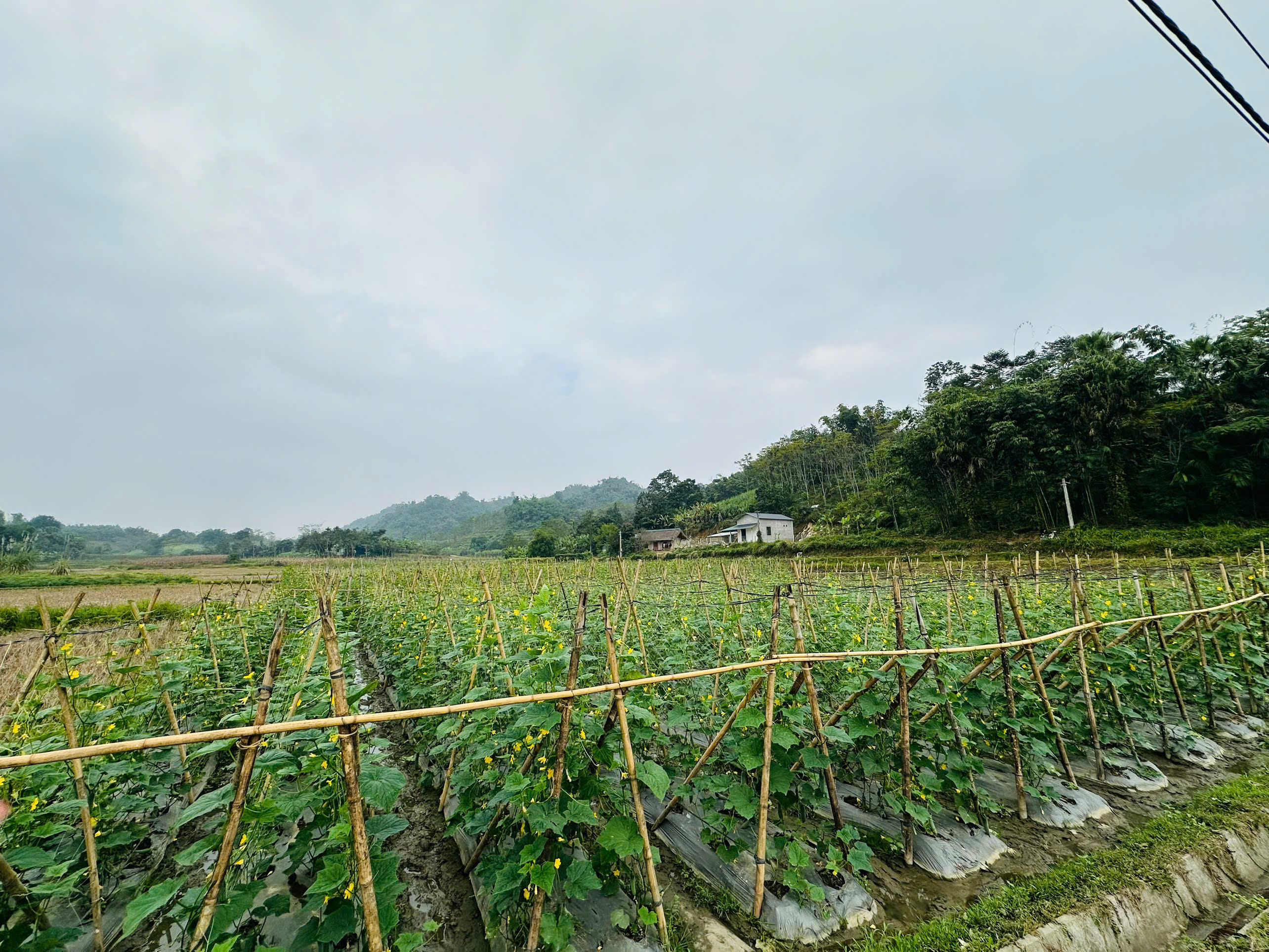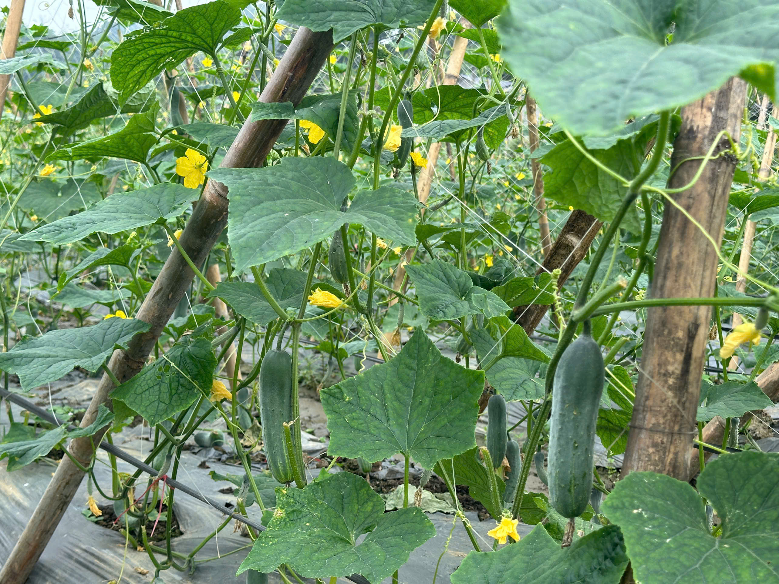 Cây dưa chuột vụ đông trên đồng đất Hòa An phát triển khá tốt