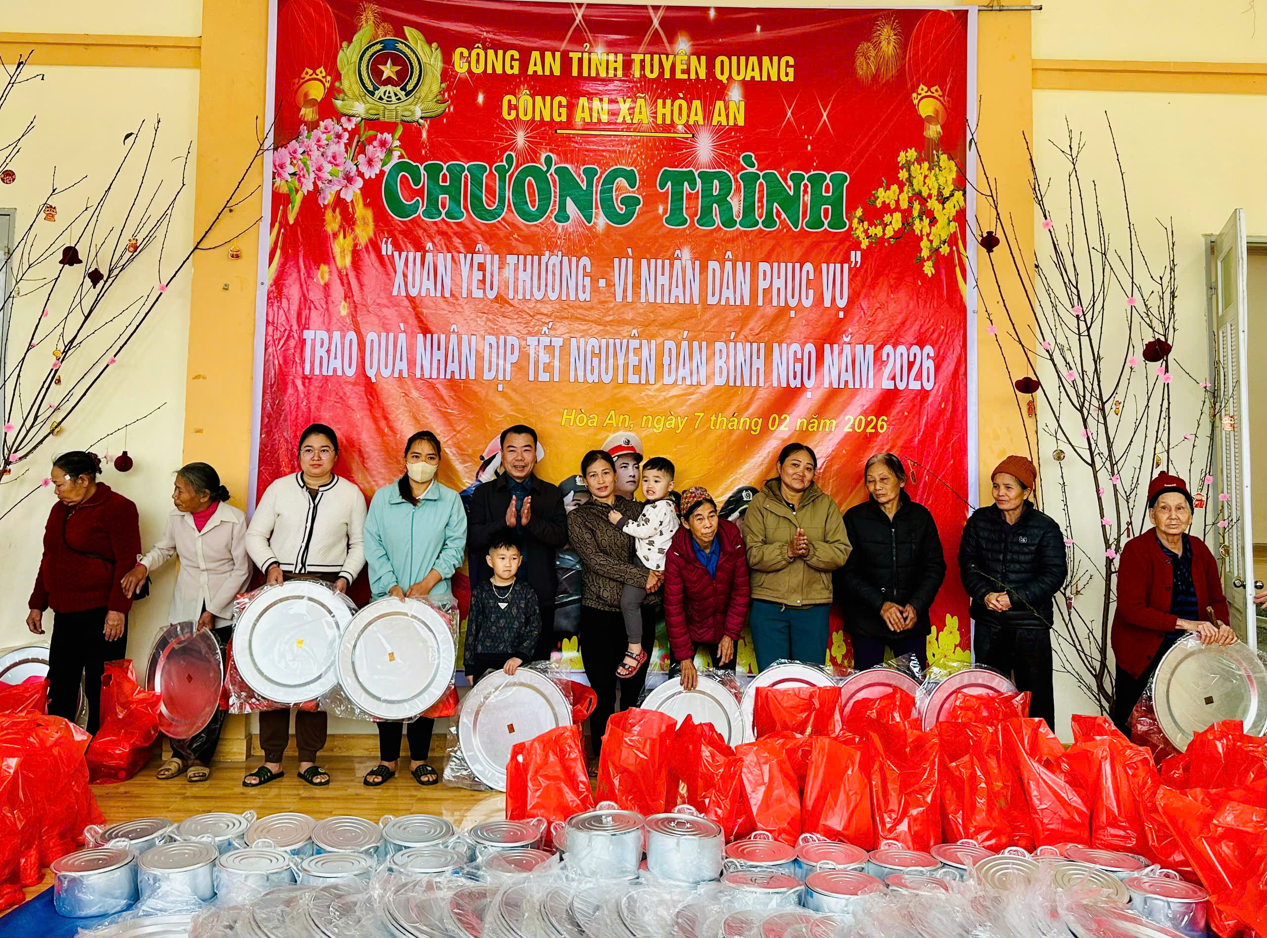 Để nhằm hỗ trợ góp phần chăm lo tết cho người nghèo, hộ có hoàn cảnh khó khăn trên địa bàn, thời gian qua Công An xã Hòa An đã phát động ủng hộ chương trình “Xuân yêu thương – Vì nhân dân phục vụ” nhân dịp tết nguyên đán Bính Ngọ 2026, chương trình nhận được sự đóng góp của 100% cán bộ chiến sỹ trong đơn vị và các tập thể, cá nhân, nhà hảo tâm trên địa.Tại Chương trình 102 xuất quà là nhu yếu phẩm thiết yếu đã được trao tận tay các hộ gia đình. Đặc biệt, dịp này Công An xã cũng tổ chức gian hàng 0đ để phục bà con.