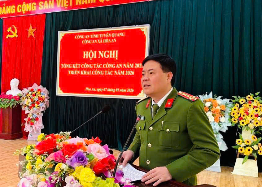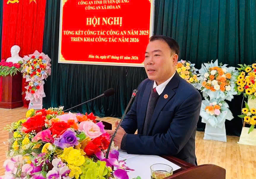Phát biểu chỉ đạo tại Hội nghị, đồng chí Đại tá Chu Quang Trung đánh giá cao kết quả Công an xã đã đạt được; đồng thời nhấn mạnh, trong thời gian tới, lực lượng Công an xã Hòa An cần nắm, đánh giá sát tình hình, tham mưu chiến lược, giải quyết các vấn đề an ninh trật tự từ sớm, tuyệt đối không để bị động, bất ngờ; tập trung tối đa nguồn lực, lực lượng, phương tiện đảm bảo an ninh an toàn đại hội đảng các cấp tiến tới Đại hội XIV của Đảng, trước mắt là thực hiện hiệu quả đợt cao điểm tấn công trấn áp tội phạm, bảo vệ Tết Nguyên đán Bính Ngọ 2026; tập trung cao độ các giải pháp xây dựng lực lượng CAND thật sự trong sạch, vững mạnh, chính quy, tinh nhuệ, hiện đại.