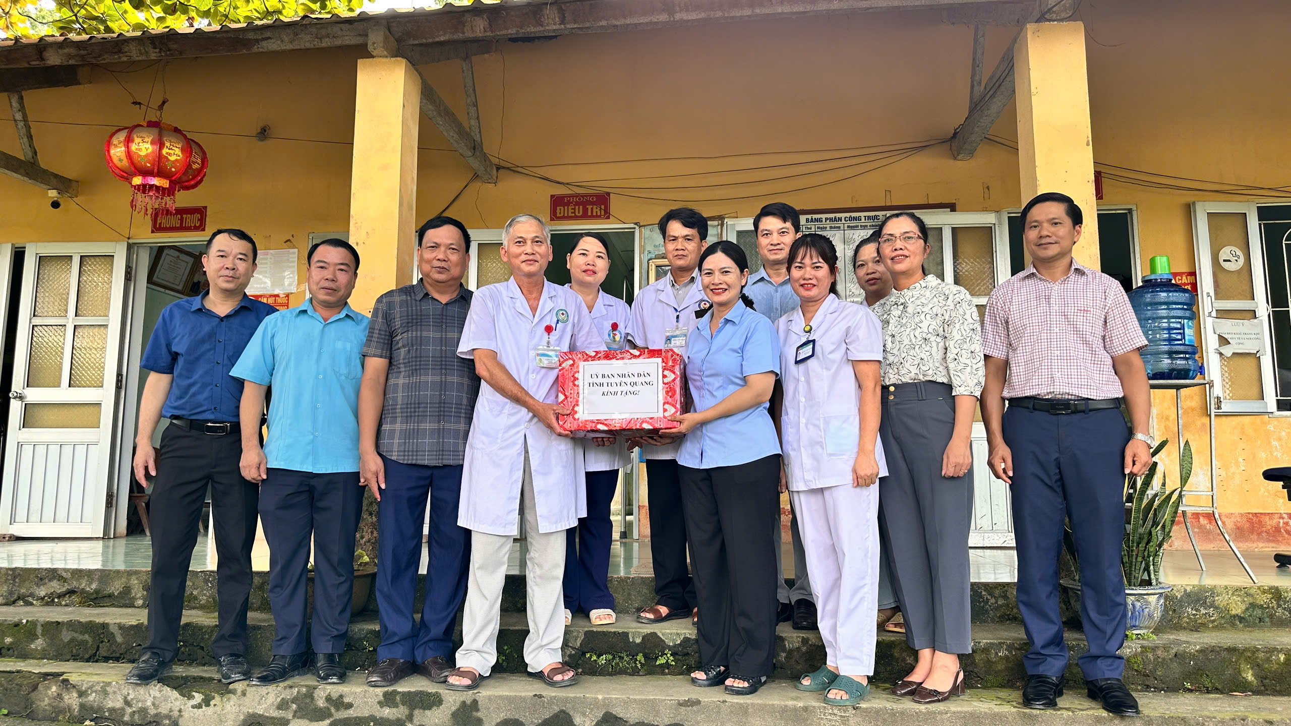 Đoàn công tác tặng quà Trạm Y tế xã.