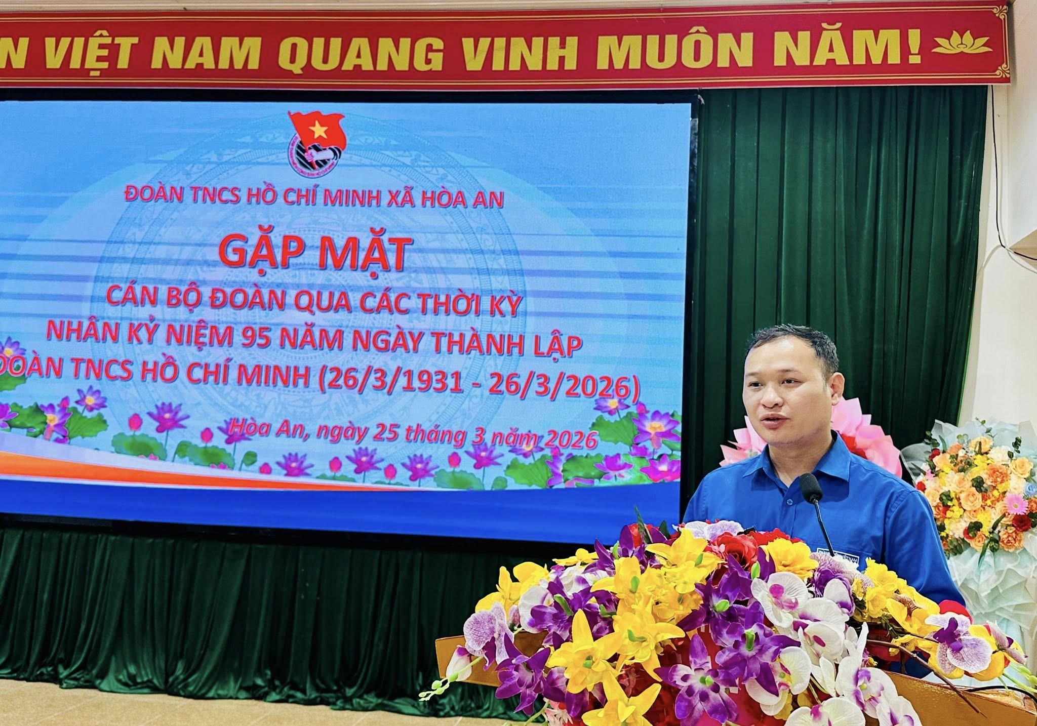 Đồng chí Hà Tiến Long, Bí thư Đoàn TNCS Hooaf Chí Minh xã Hòa An ôn lại truyền thống 95 ngày thành lập Đoàn