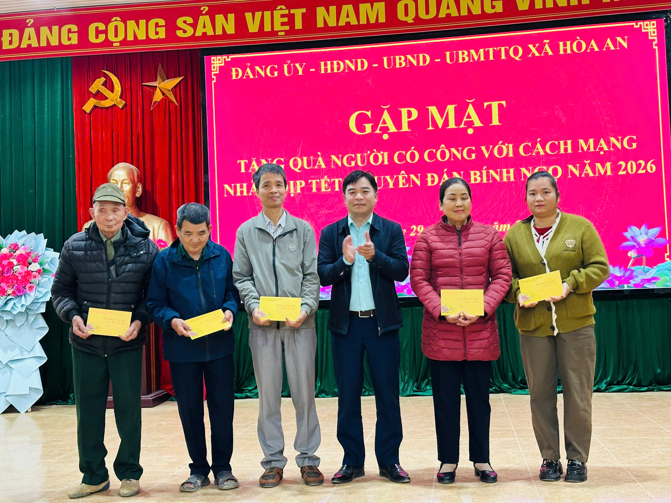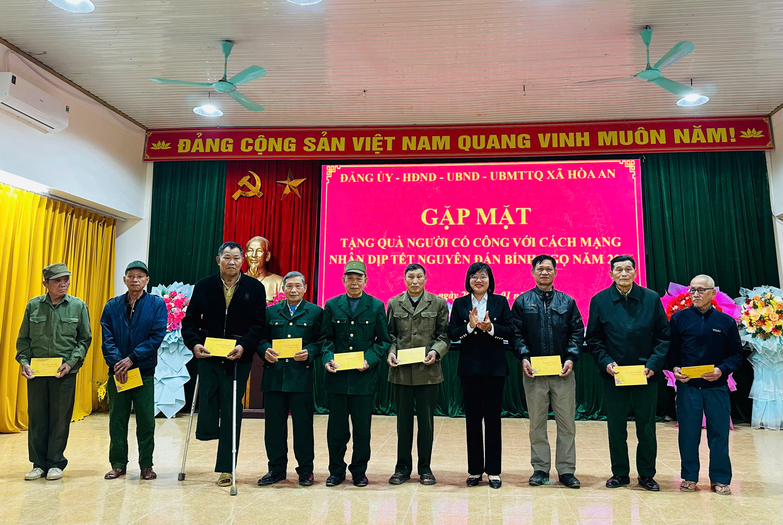 Tại buổi gặp mặt các đồng chí lãnh đạo xã đã trao 149 xuất quà cho người có công, gia đình chính sách, thân nhân người có công trên địa bàn xã./.