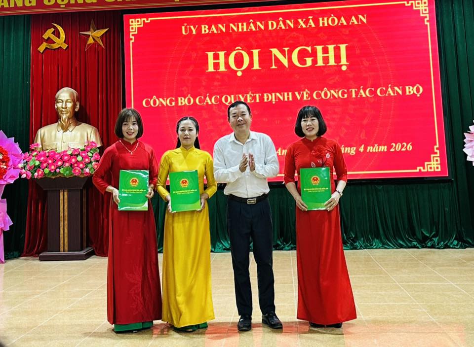 Bổ nhiệm bà Lê Thị Thìn, sinh ngày 11/5/1984, viên chức Trường Mầm non Hòa An, giữ chức vụ Phó Hiệu trưởng Trường Mầm non Hòa An. Thời hạn bổ nhiệm 05 năm, kể từ ngày 01/4/2026.