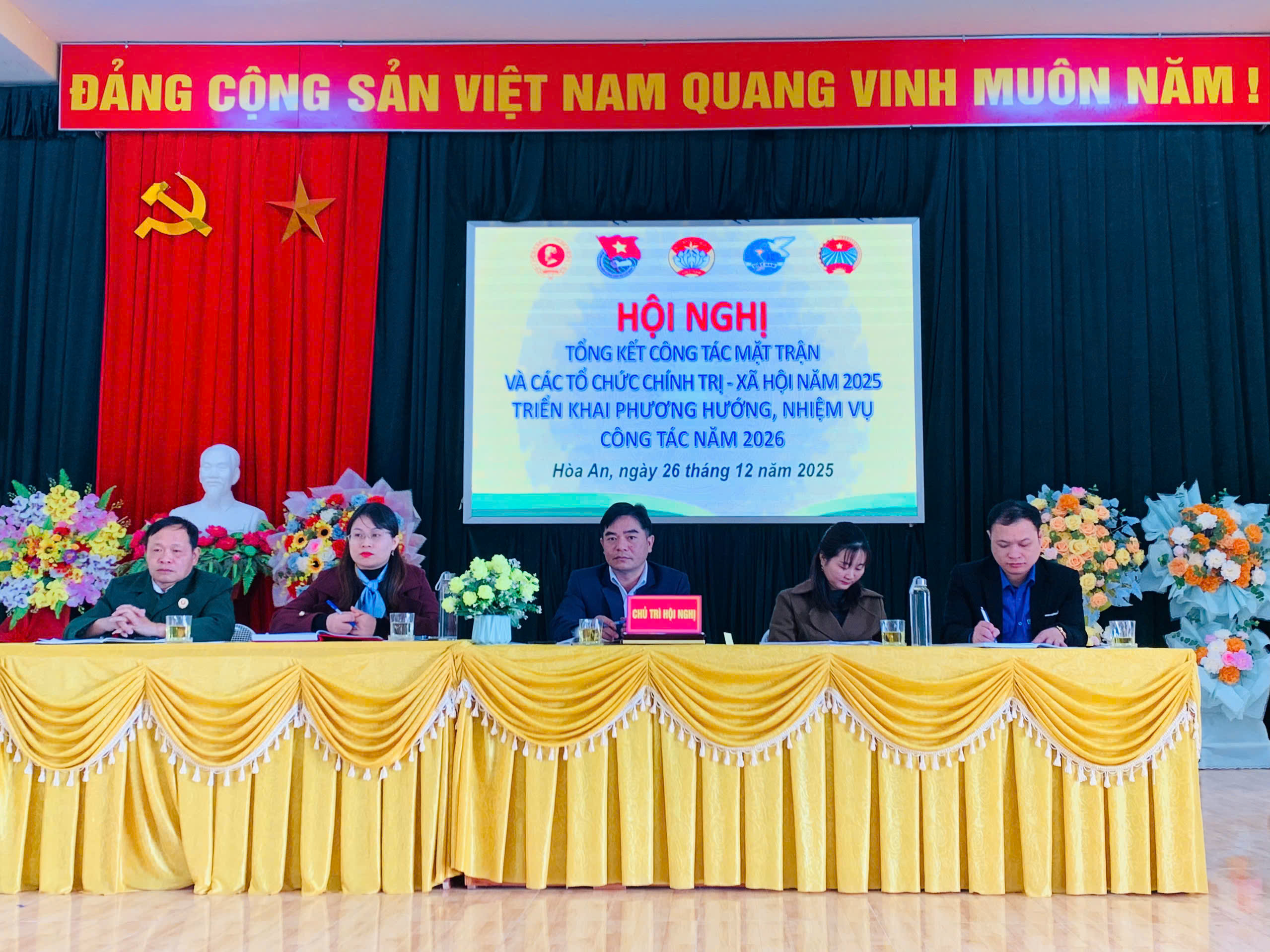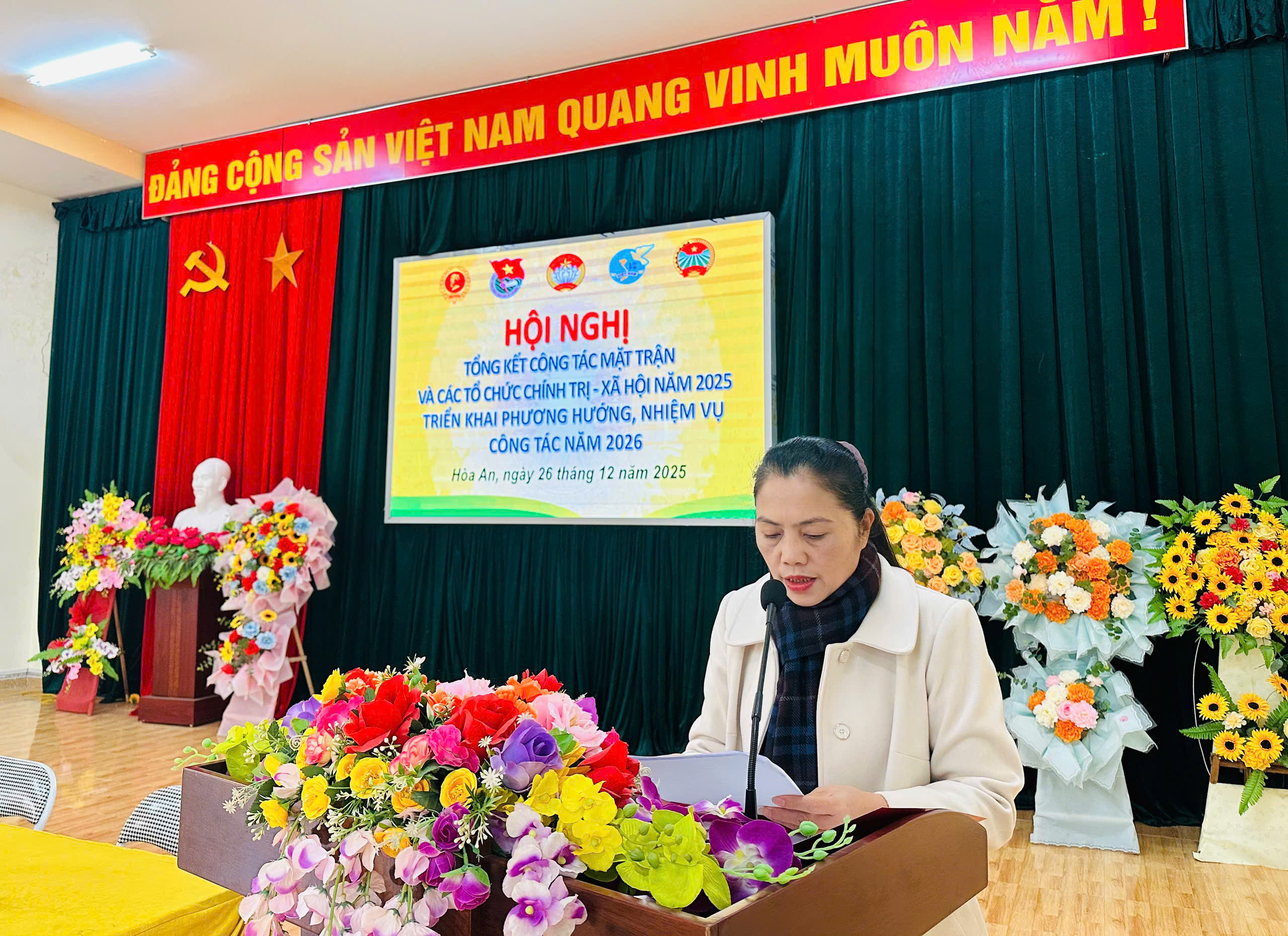 Đến dự và phát biểu tại hội nghị, đồng chí Trần Văn Tuyên, Bí thư Đảng ủy xã biểu dương kết quả MTTQ, các tổ chức chính trị-xã hội xã đạt được trong năm 2025 sau sát nhập và thực hiện mô hình chính quyền địa phương 2 cấp. Đồng thời chỉ rõ những hạn chế cần khắc phục. Đồng chí đề nghị trong năm 2026, MTTQ và các tổ chức chính trị - xã hội xã tiếp tục đổi mới nội dung, phương thức hoạt động, hướng mạnh về cơ sở, tăng cường nắm bắt tâm tư, nguyện vọng chính đáng của Nhân dân. Cùng với đó, phát huy vai trò giám sát, phản biện xã hội; góp phần xây dựng hệ thống chính trị vững mạnh, thúc đẩy phát triển kinh tế – xã hội, giữ vững quốc phòng – an ninh tại địa phương. Ủy MTTQ các tổ chức chính trị -xã hội xã cần chủ động hơn nữa trong đề xuất với Đảng ủy trong thực hiện những phần việc, hoạt động cụ thể; mỗi tổ chức cần có một nội dung công việc cụ thể thiết thực trong hoạt động của tổ chức Hội; trong năm 2026, MTTQ, các tổ chức chính trị-xã hội cần làm tốt công tác ttuyen truyền về cuộc bầu cử đại biểu Quốc hội và HĐND các cấp nhiệm kỳ 2026-2031; Tiếp tục tuyên truyền vận động đoàn viên, hội viên đẩy mạnh phát triển kinh tế; hướng dẫn hội viên duy trì hiệu quả và nâng cao chất lượng các sản phẩm được công nhân ocop.