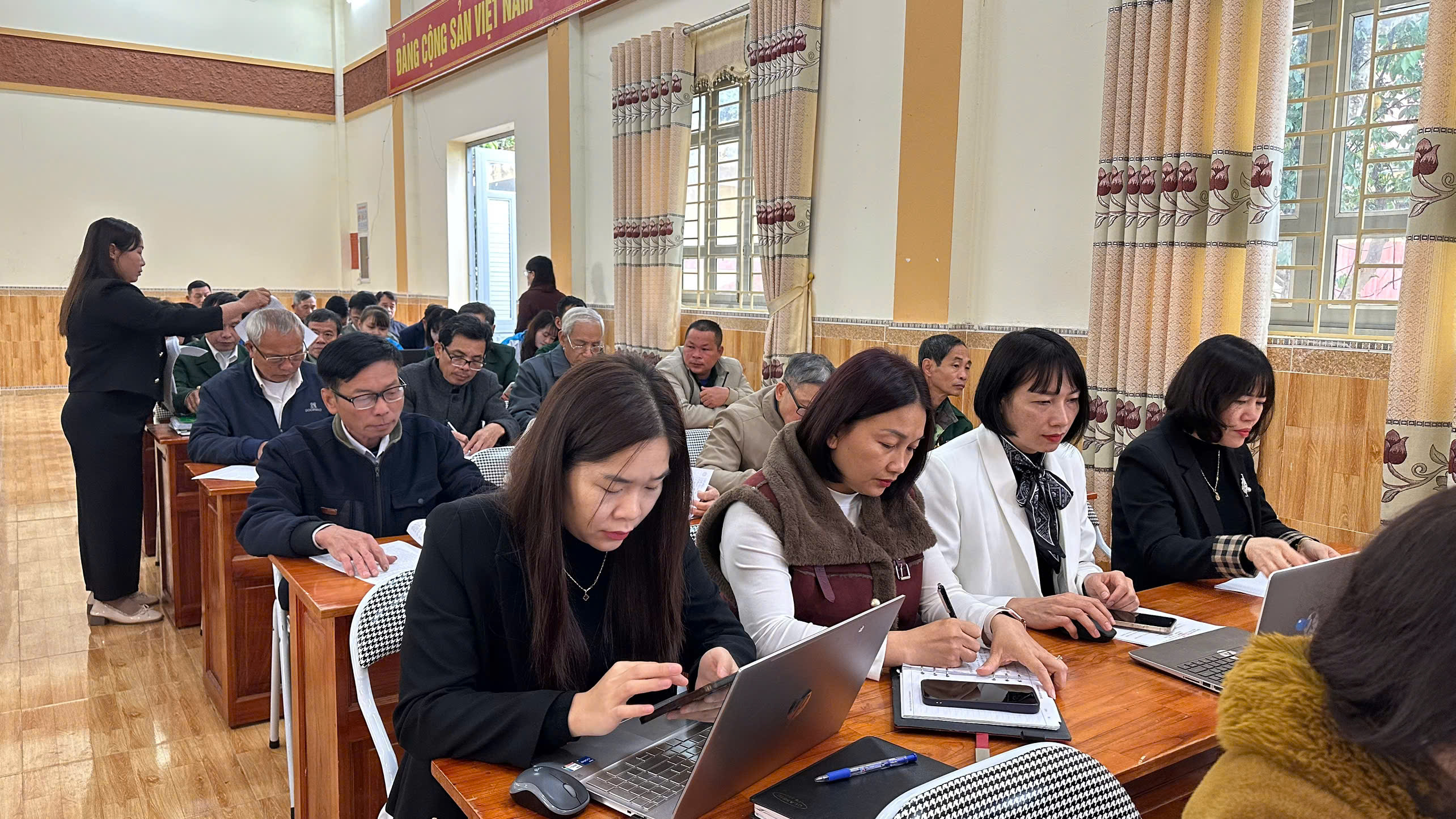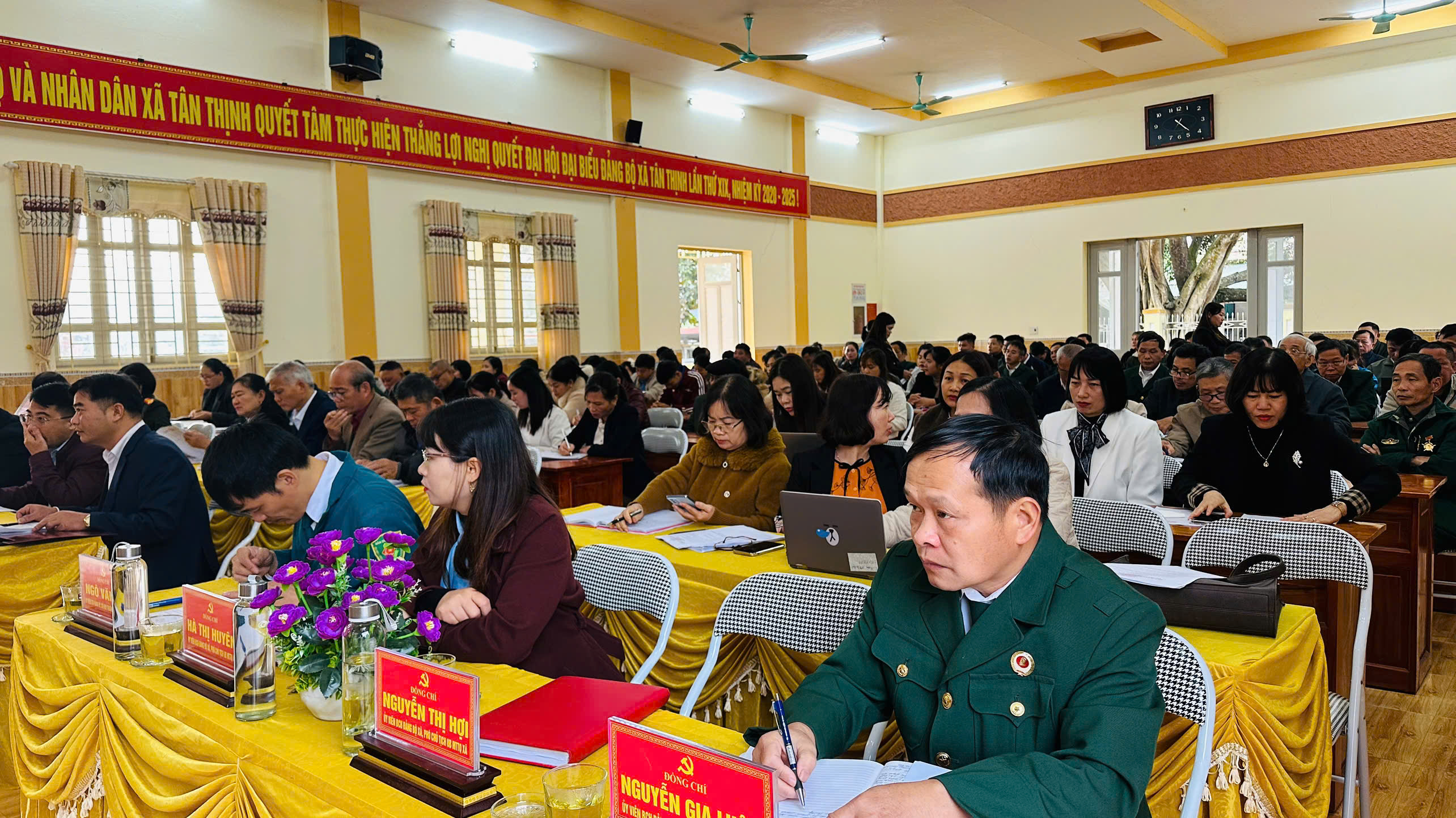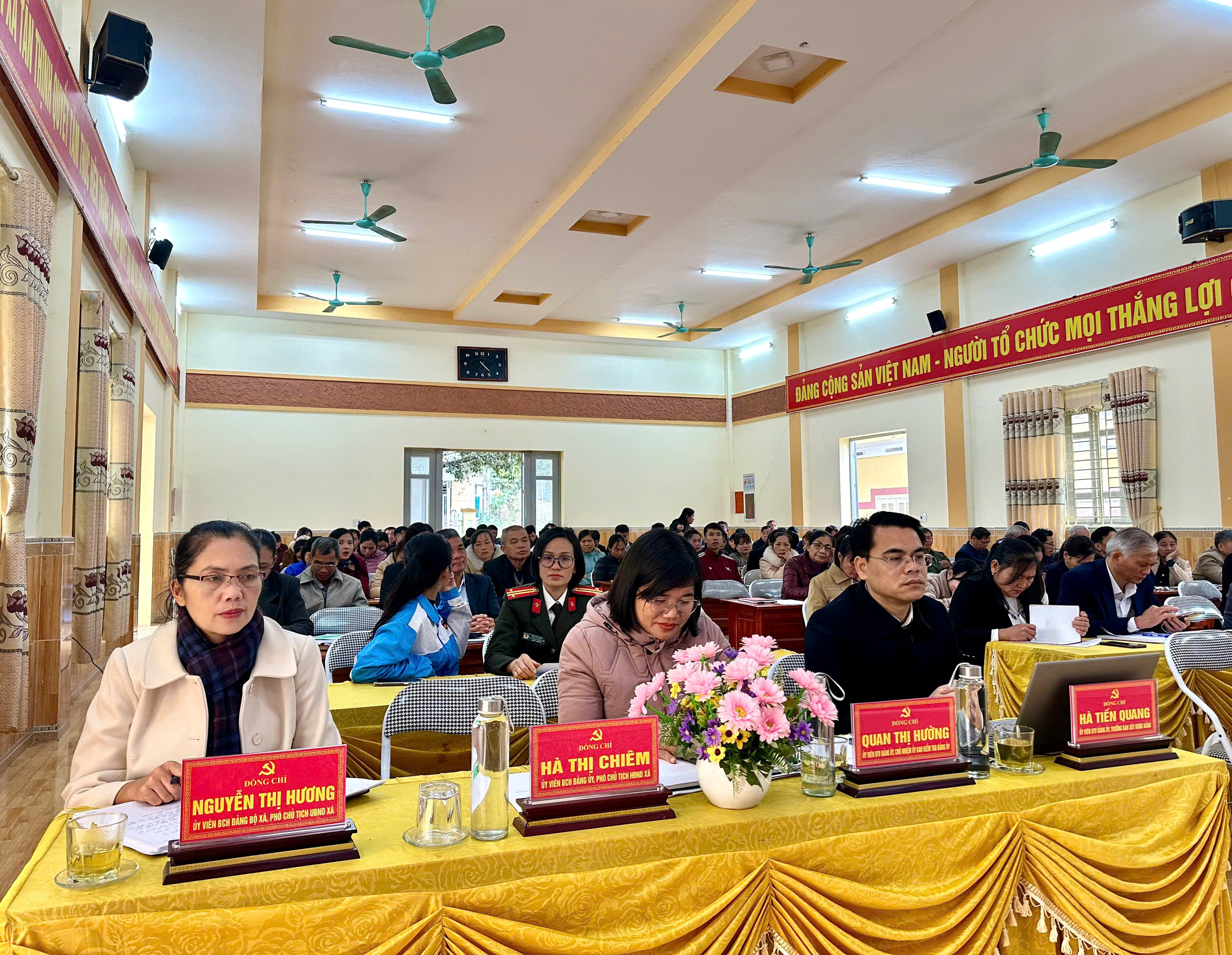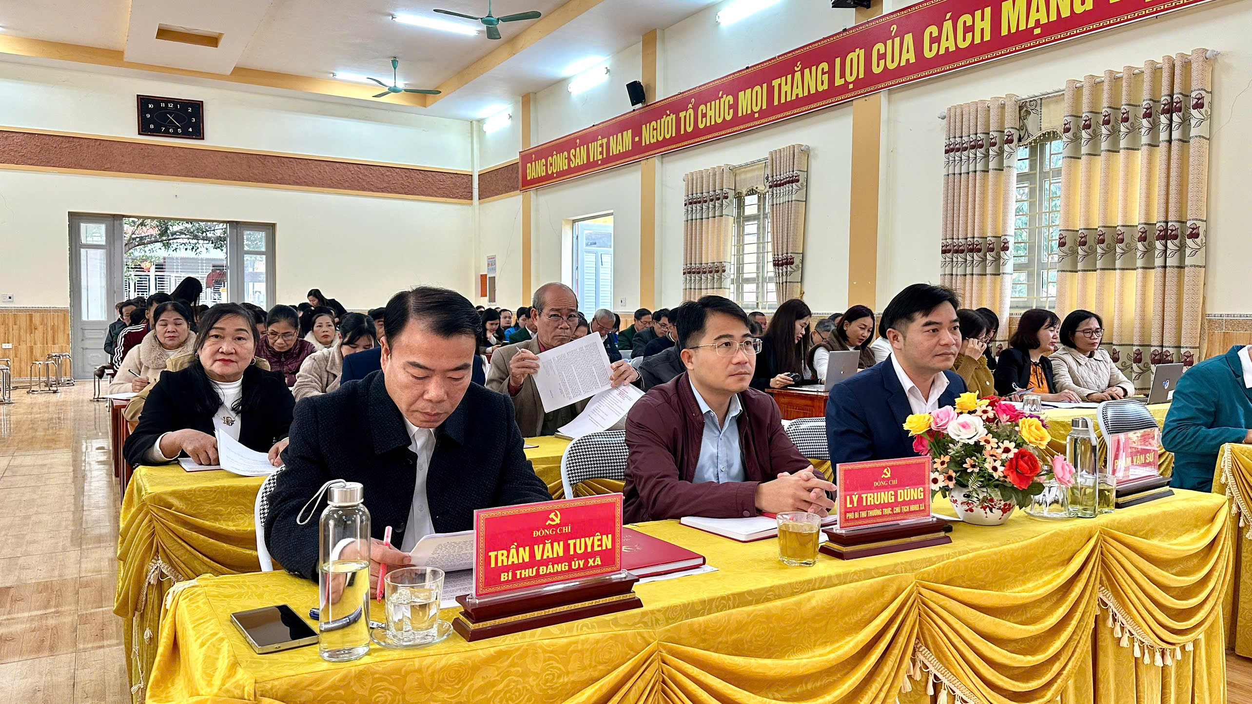 Các đồng chí lãnh đạo Đảng ủy, HĐND, UBND xã dự hội nghị