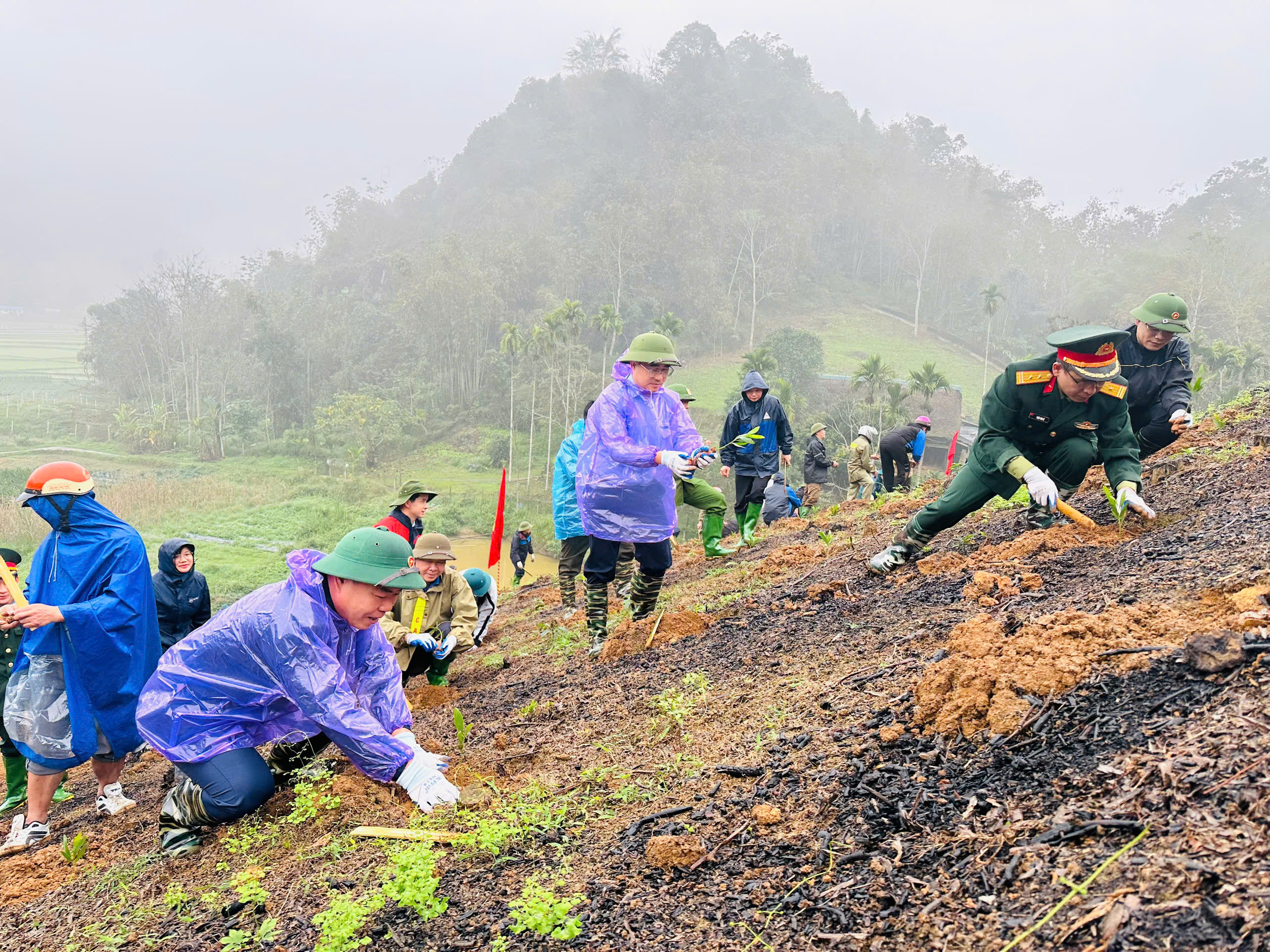 Tại Buổi Lễ phát động cán bộ, công chức viên chức, người lao động nhân dân thôn Pá Tao đã tham gia trồng mới 1,3 ha cây keo lai và Bồ đề thuộc khu vực Búc Lục, thôn Pá Tao./.