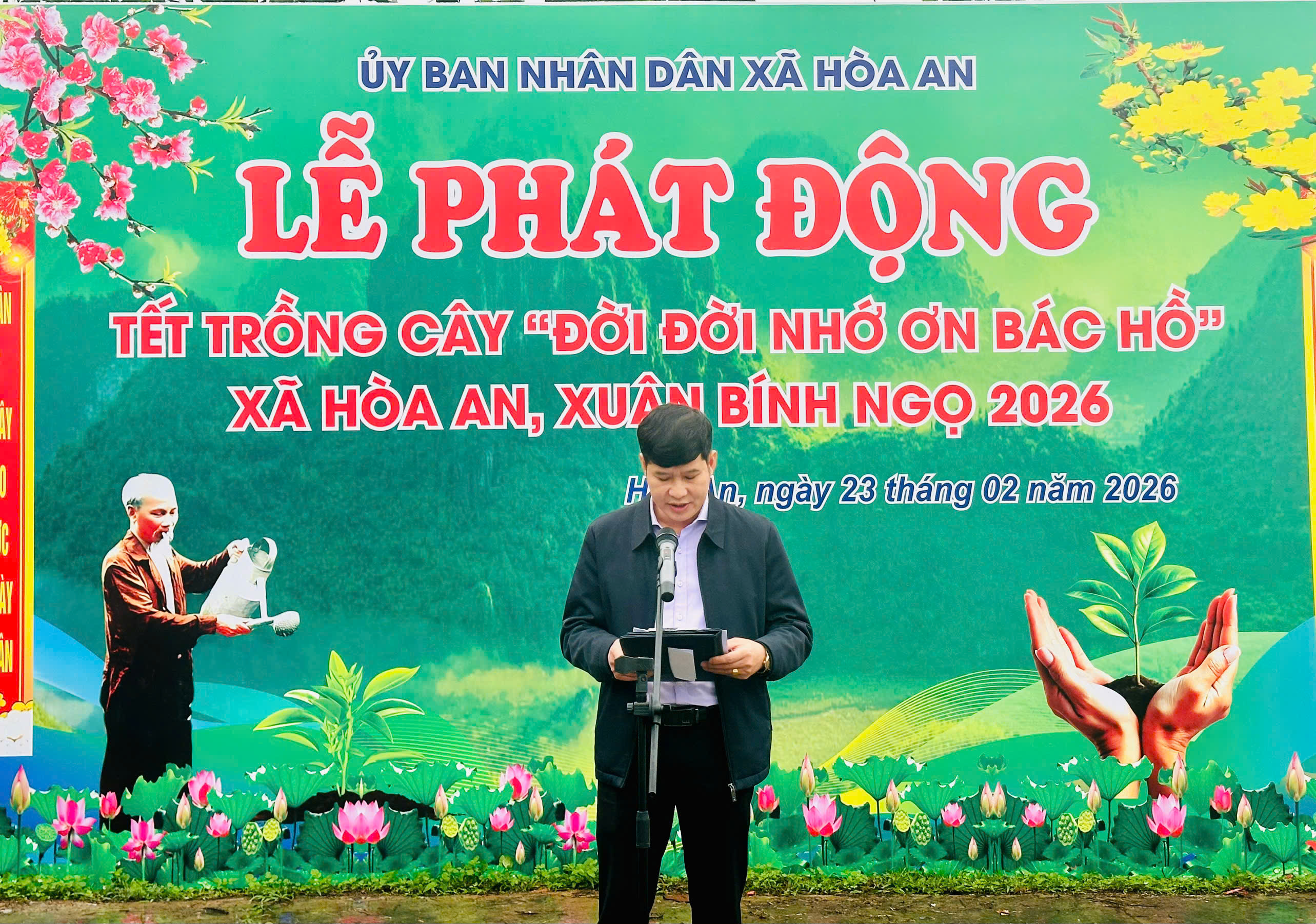 Lễ phát động Tết trồng cây đời đời nhớ ơn Bác Hồ xã Hòa An Xuân Bính Ngọ 2026 được tổ chức nhằm kêu gọi toàn thể Nhân dân hăng hái, nhiệt tình tham gia trồng cây, trồng rừng cải tạo môi trường sống; kêu gọi mỗi tổ chức, cá nhân tự nâng cao ý thức bảo vệ rừng, ngăn chặn tình trạng chặt phá, đốt rừng, khai thác rừng trái pháp luật, khuyến khích phát triển kinh tế rừng; coi đây là nhiệm vụ trọng tâm và tổ chức thực hiện nhiều biện pháp cụ thể, thiết thực để chăm sóc, bảo vệ và phát triển rừng. Năm 2026, Hòa An phấn đấu trồng mới 125ha rừng tập trung, duy trì tỷ lệ tre phủ rừng trên 47%.