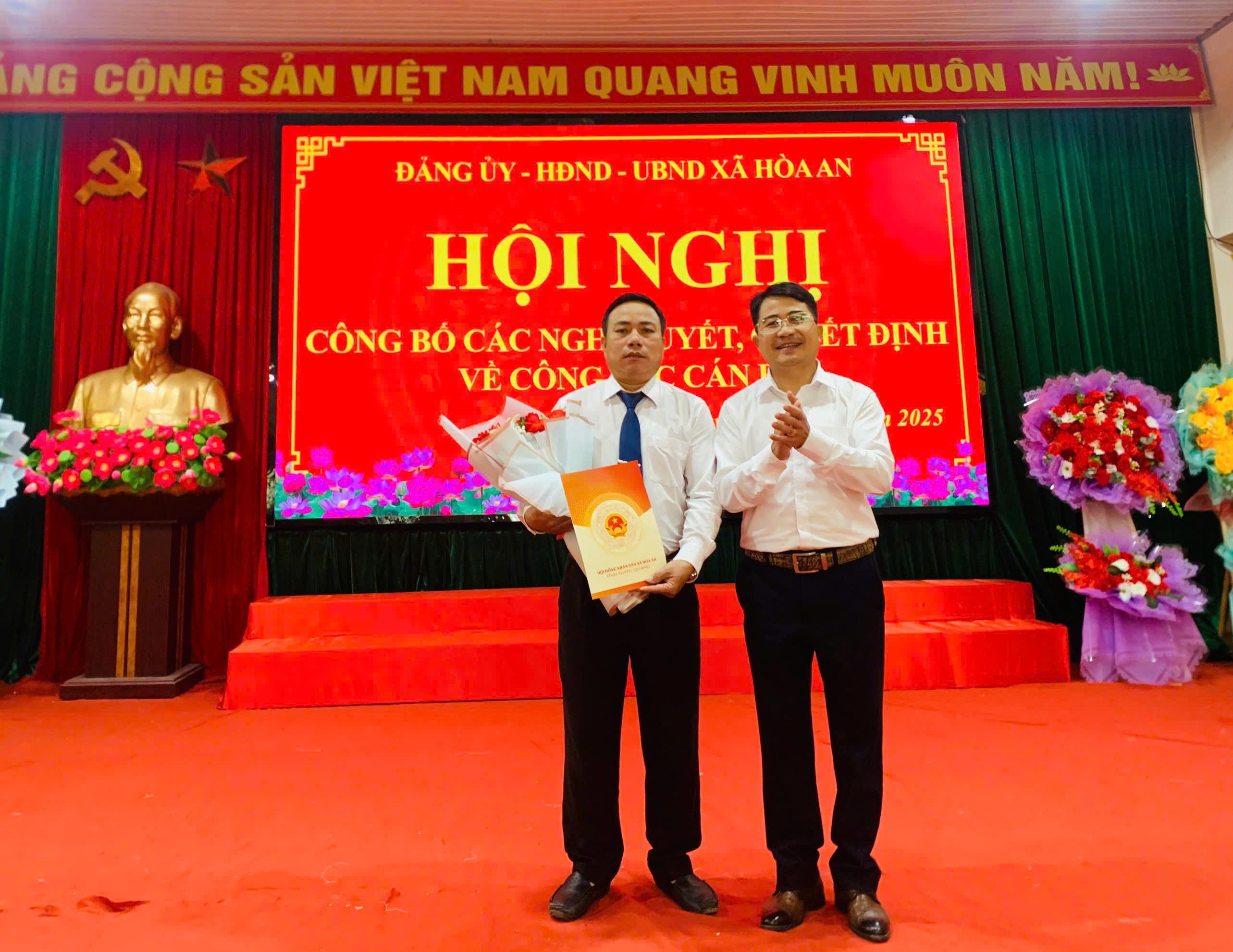 Tại Hội nghị, Ban Thường vụ Đảng ủy, Chủ tịch UBND xã, Thường trực HĐND xã đã công bố các Nghị quyết, Quyết định điều động, tiếp nhận và bổ nhiệm công chức giữ chức vụ lãnh đạo, quản lý cho các đồng chí: Hoàng Văn Thắng thôi giữ chức vụ Phó Trưởng Ban Văn hóa – Xã hội HĐND xã đến nhận công tác tại UBND xã, bổ nhiệm có thời hạn 05 năm giữ chức vụ Phó Trưởng phòng Văn hóa – Xã hội xã; đồng chí Lưu Duy Đan thôi giữ chức vụ Trưởng phòng Kinh tế xã, đến nhận công tác tại HĐND xã, được chỉ định giữ chức vụ Phó Trưởng Ban Văn hóa – Xã hội HĐND xã; đồng chí Hà Công Cương, Phó Trưởng phòng Văn hóa – Xã hội được điều động đến nhận công tác tại Phòng Kinh tế xã, bổ nhiệm có thời hạn 05 năm giữ chức vụ Phó Trưởng phòng Kinh tế. Đồng chí Hà Thị Vui, chuyên viên Trung tâm Phục vụ hành chính công được điều động đến nhận công tác tại Văn phòng HĐND & UBND. Đây là sự sắp xếp, bố trí nhân sự phù hợp, tạo điều kiện để cán bộ phát huy sở trường, tích lũy thêm kinh nghiệm trong thực tiễn công tác.