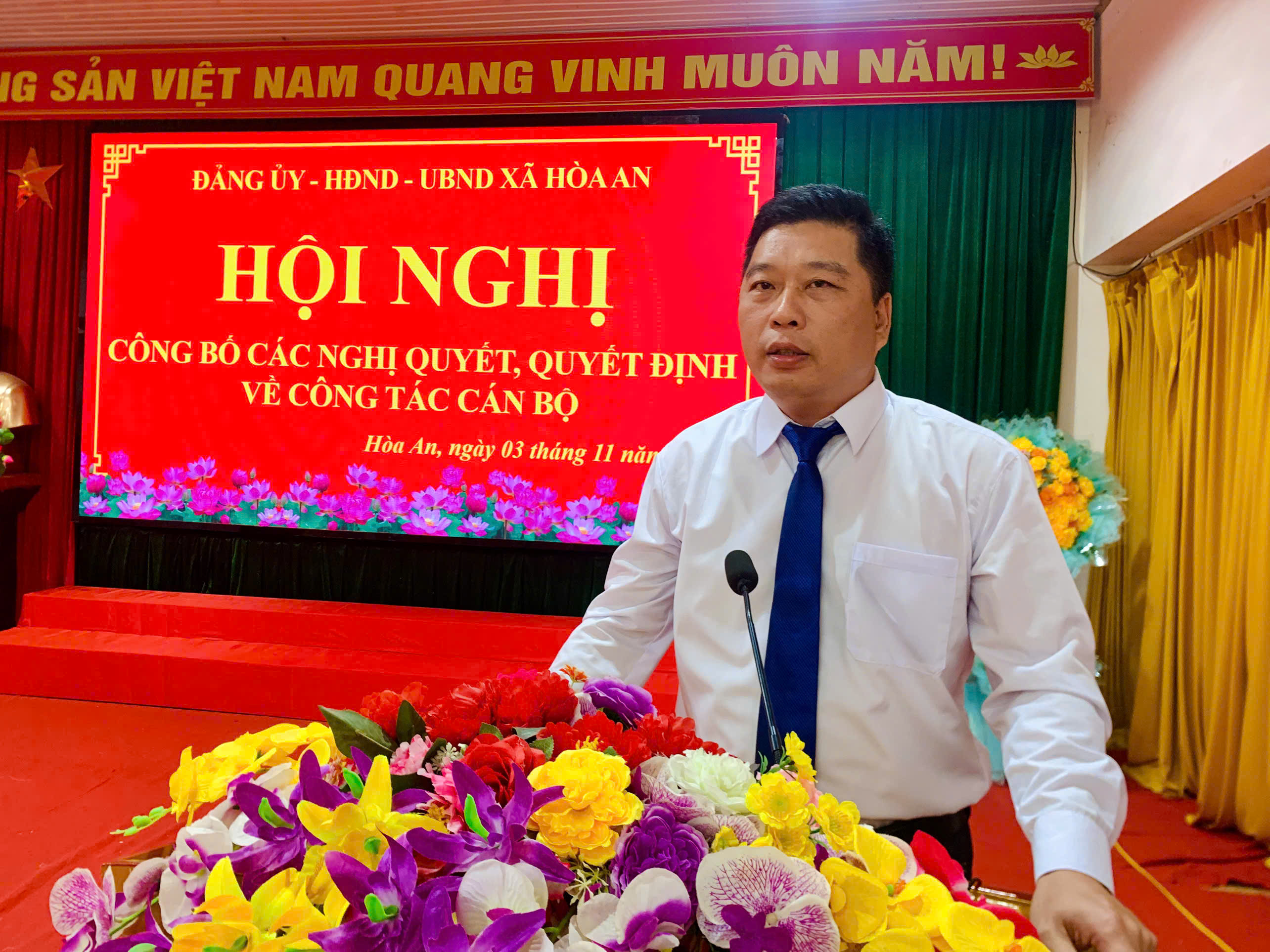 Đại diện các đồng chí được điều động, bổ nhiệm, đồng chí Hoàng Văn Thắng, Phó Trưởng phòng Văn hóa – Xã hội phát biểu cảm ơn sự tin tưởng của lãnh đạo Đảng ủy, chính quyền xã và hứa sẽ nỗ lực phấn đấu, hoàn thành tốt nhiệm vụ trên cương vị mới.