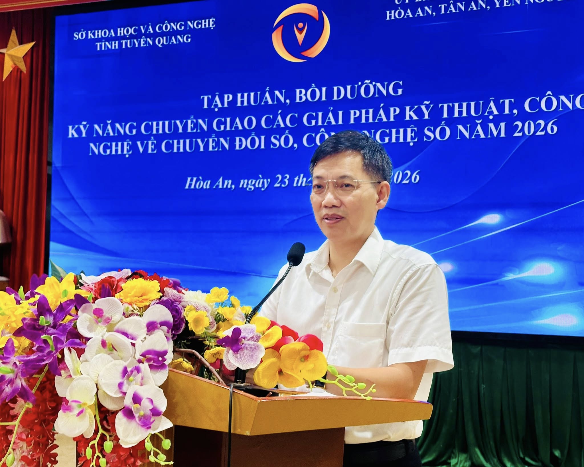 Đồng chí Trần Kim Ngọc, Phó Giám đốc Sở Khoa học và Công nghệ phát biểu tại hội nghị
