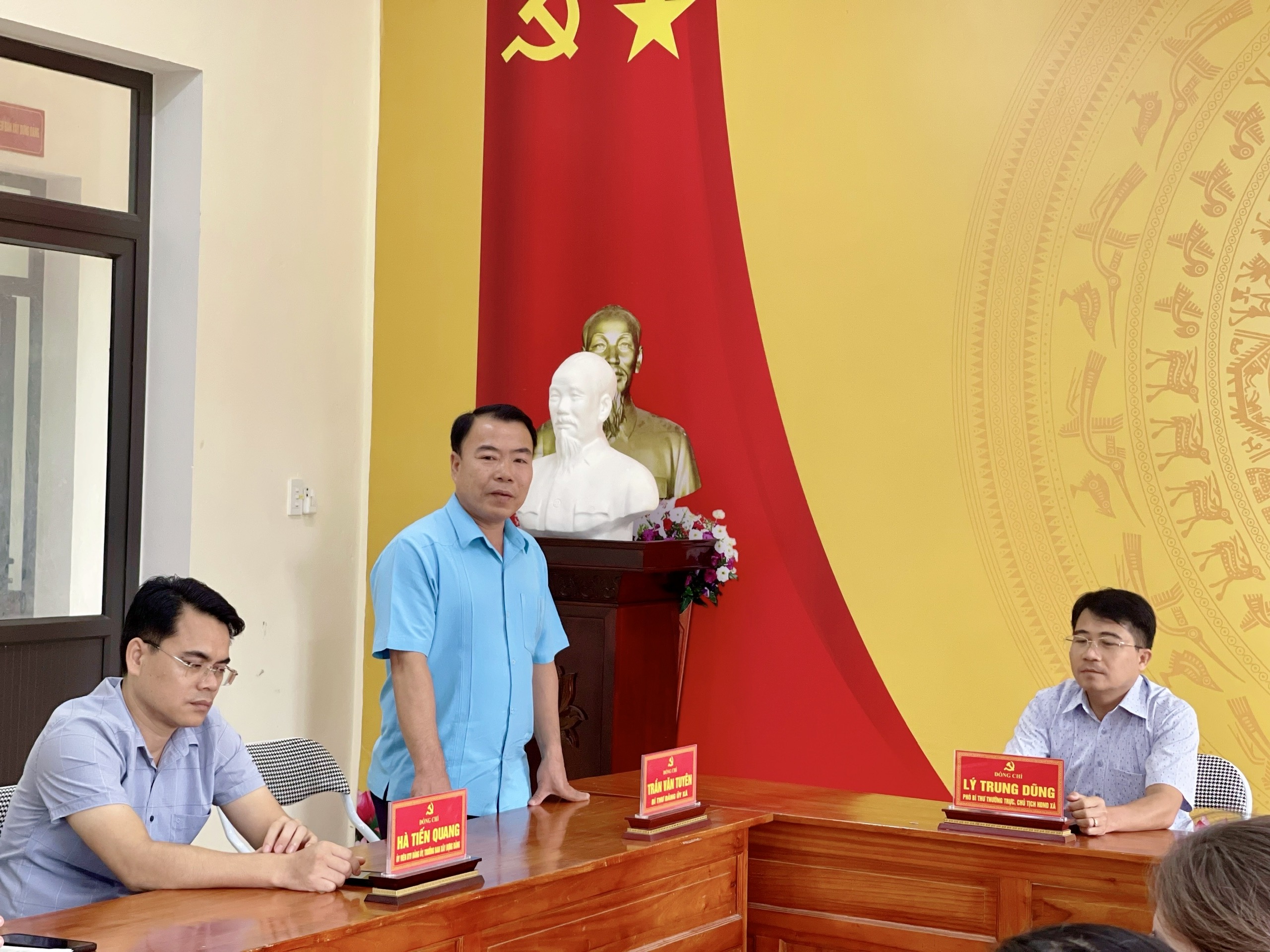 Đồng chí Trần Văn Tuyên, Bí thư Đảng ủy xã phát biểu tại Hội nghị.