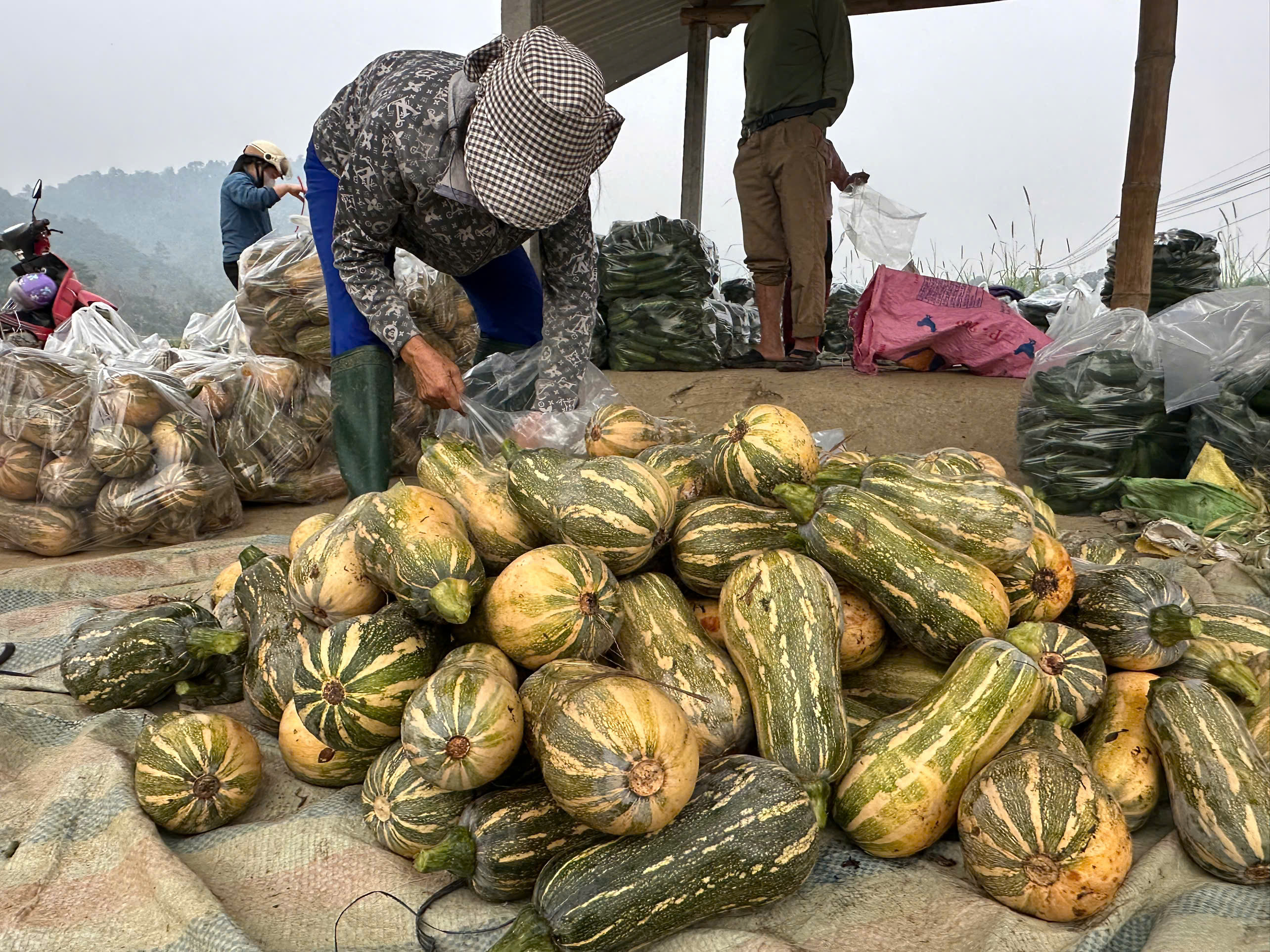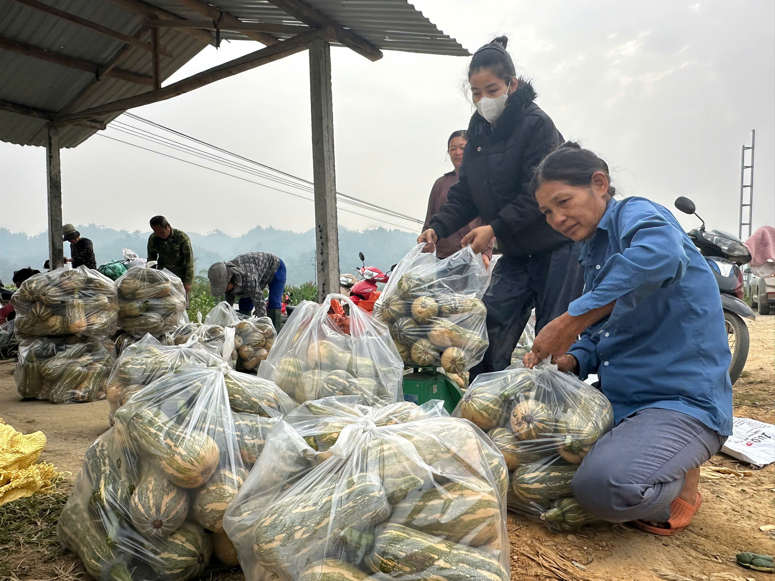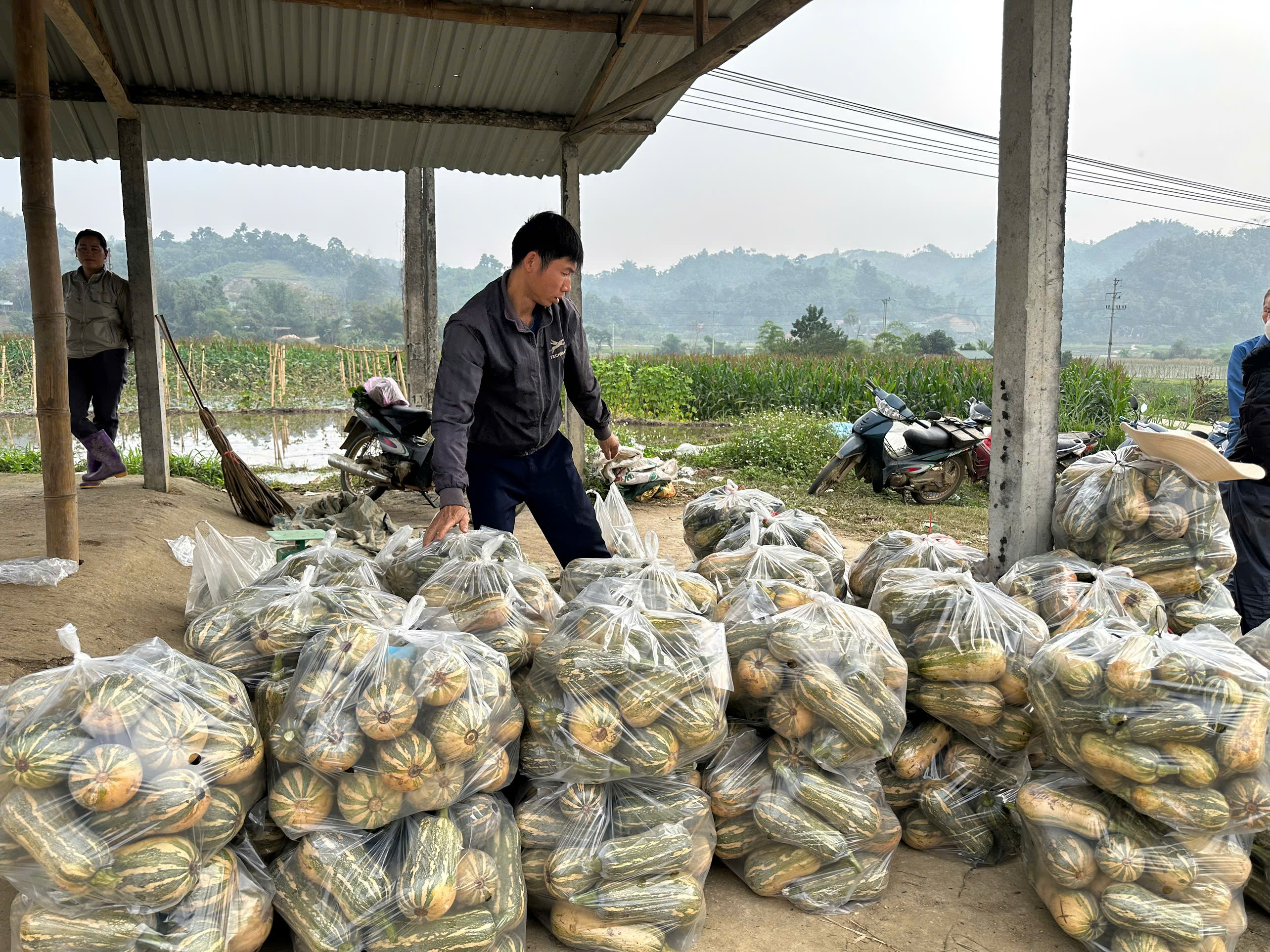 Nhờ thực hiện sản xuất theo chuỗi liên kết bao tiêu sản phẩm nên bà con yên tâm sản xuất, bí đỏ và dư chuột được thu hoạch mang đến điểm tập kết.