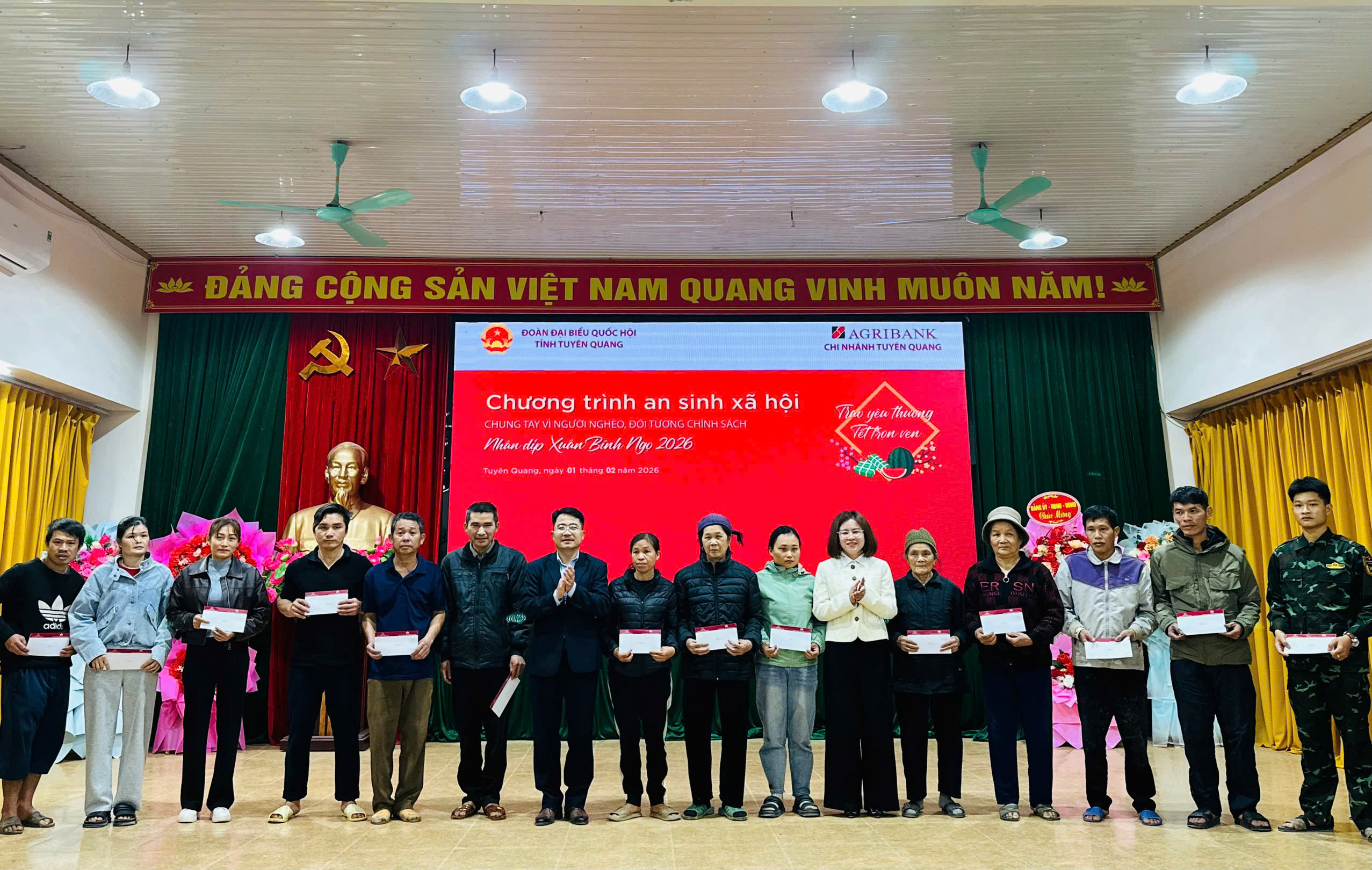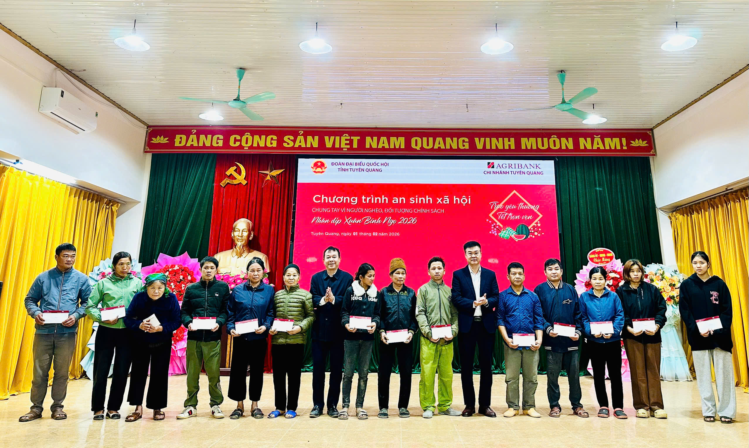 Tại chương trình, đồng chí Ma Thị Thúy, Ủy viên BCH Đảng bộ tỉnh, Phó Trưởng đoàn ĐBQH hoạt động chuyên trách tỉnh và lãnh đạo Chi nhánh Agibank Tuyên Quang đã trao tặng 50 suất quà cho hộ nghèo, gia đình có hoàn cảnh khó khăn trên địa bàn xã Hòa An.