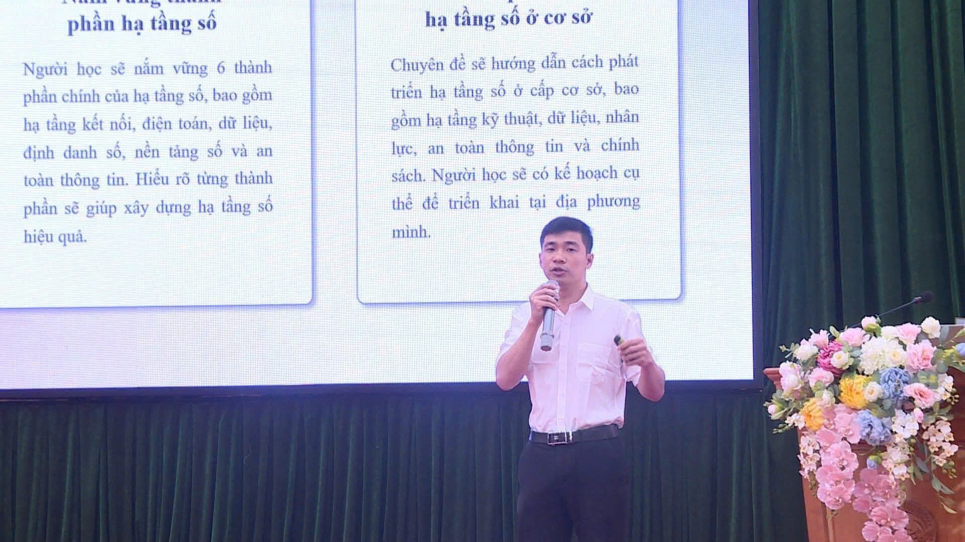Trong thời gian 4,5 ngày, các học viên sẽ được tiếp thu nội dung 08 Chuyên đề gồm: Tổng quan hạ tầng số, điện toán đám mây; Công cụ văn phòng trực tuyến; AI cho công việc hành chính – Văn bản; AI cho truyền thông và tuyên truyền; AI cho phân tích dữ liệu công việc; AI hỗ trợ khai thác thông tin; Bình dân học AI tại cơ sở; Hướng dẫn học tập và cách sử dụng nền tảng bình dân học vụ số. Hội nghị tập huấn ứng dụng AI nhằm trang bị những kiến thức nền tảng, công cụ thực tiễn về AI cho cán bộ, công chức, viên chức; đồng thời còn là một trong những hoạt động hưởng ứng phong trào “Bình dân học vụ số”.