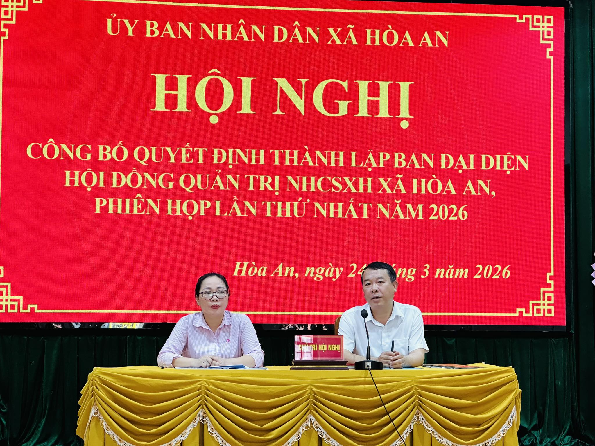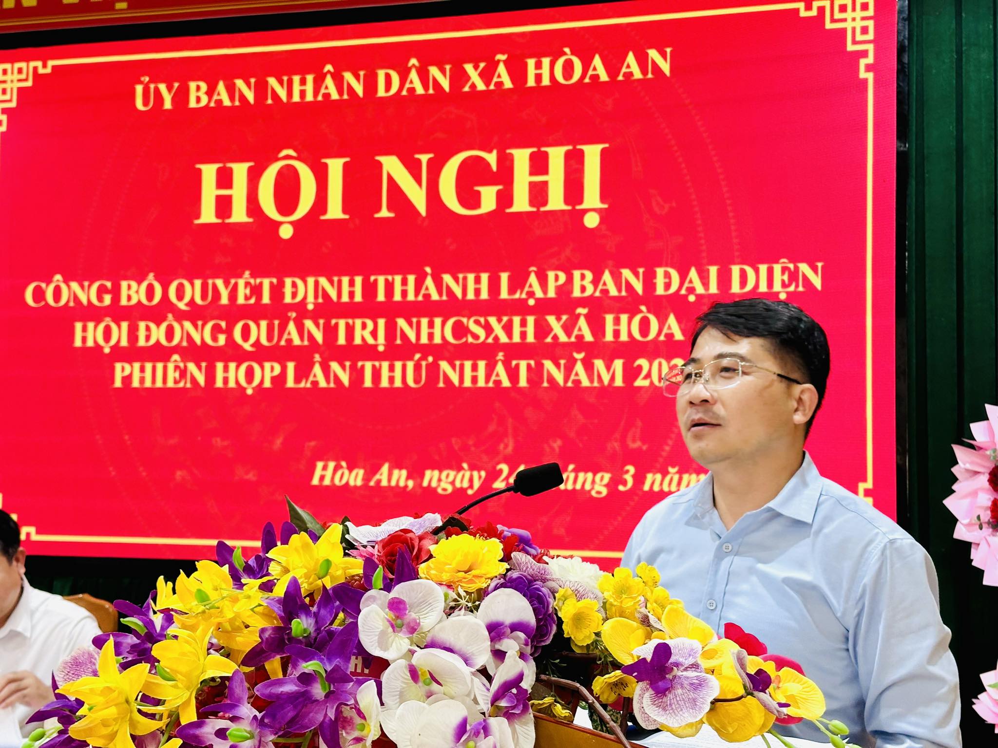 Hội nghị đã công bố quyết định thành lập Ban đại diện Hội đồng quản trị Ngân hàng CSXH xã Hòa An có 4 thành viên. Đồng chí Đỗ Văn Hiếu, Phó Bí thư Đảng ủy, Chủ tịch UBND xã, giữ vai trò Trưởng ban. Các thành viên gồm Chủ tịch Ủy ban MTTQ Việt Nam xã, Trưởng phòng Văn hóa - Xã hội và Lãnh đạo Phòng giao dịch Ngân hàng CSXH Chiêm Hóa. Hội nghị đã thông qua quy chế hoạt động của Ban đại diện. Theo đó, Ban đại diện Hội đồng quản trị chịu trách nhiệm phối hợp quản lý và giám sát nguồn vốn tín dụng chính sách. Đồng thời, Ban đại diện tạo điều kiện để hộ nghèo và các đối tượng chính sách tiếp cận nguồn vốn vay ưu đãi, nhằm phát triển sản xuất và nâng cao chất lượng cuộc sống. Hoạt động này góp phần thực hiện hiệu quả mục tiêu giảm nghèo bền vững và thúc đẩy phát triển kinh tế - xã hội địa phương.