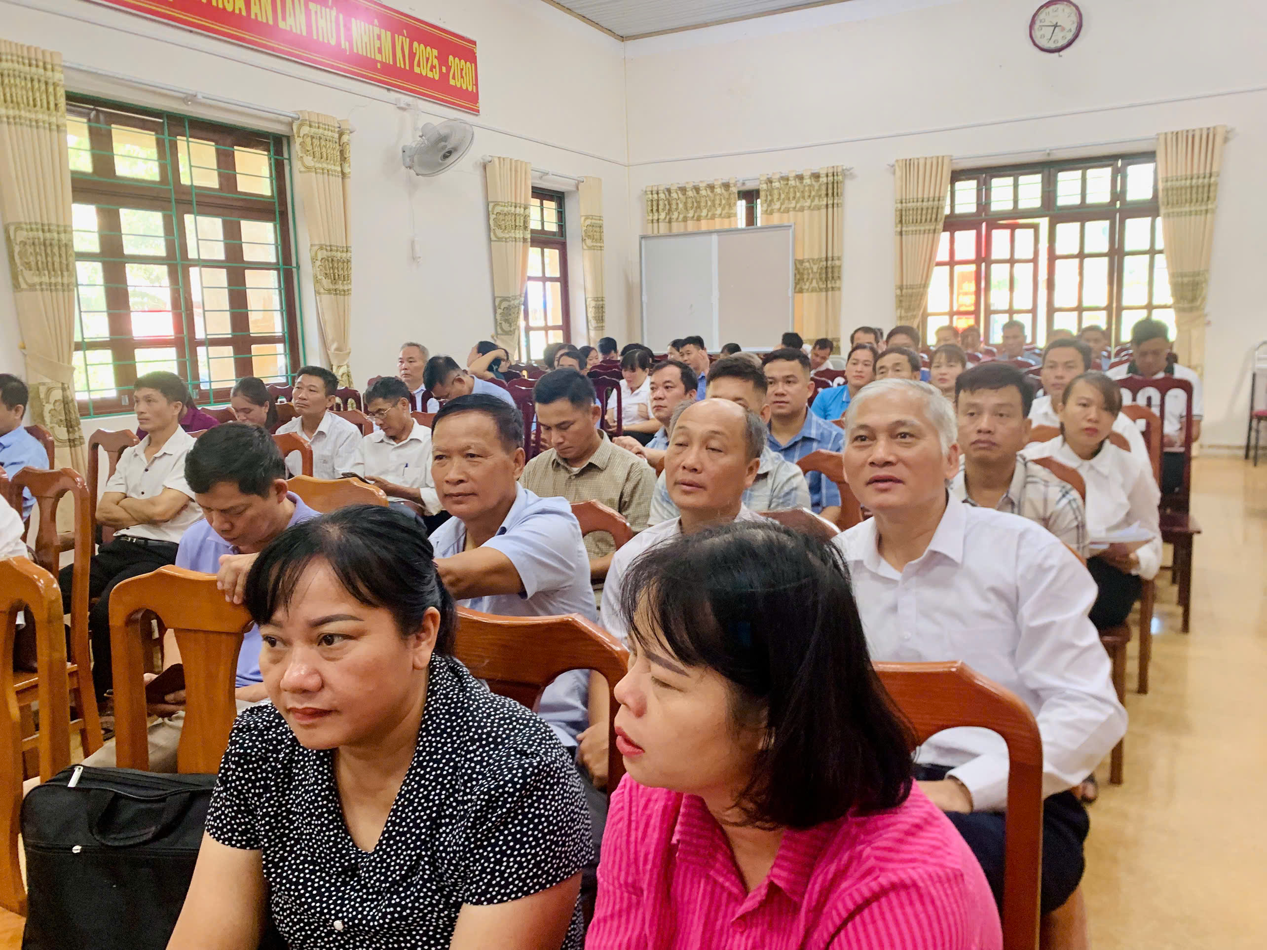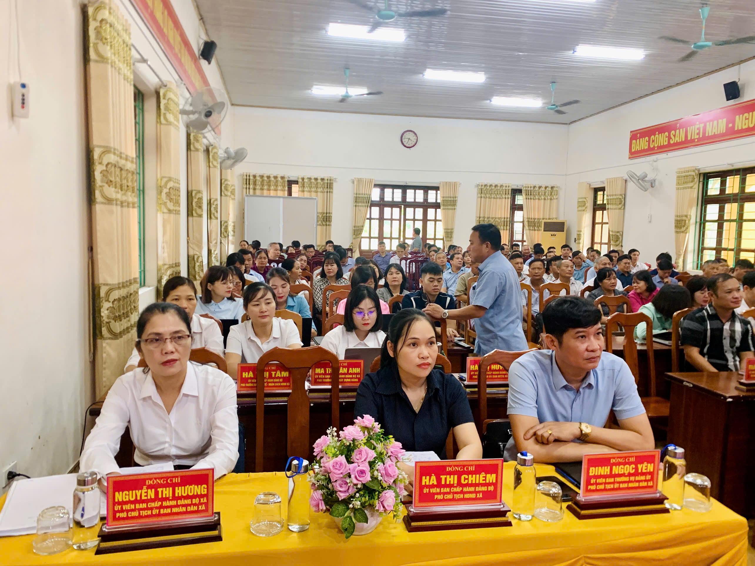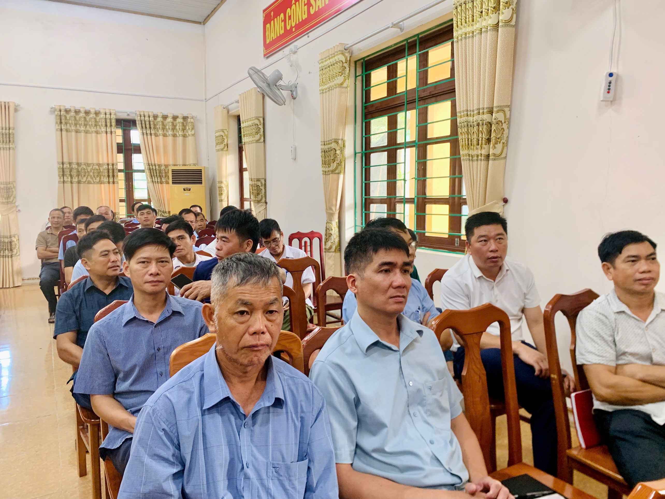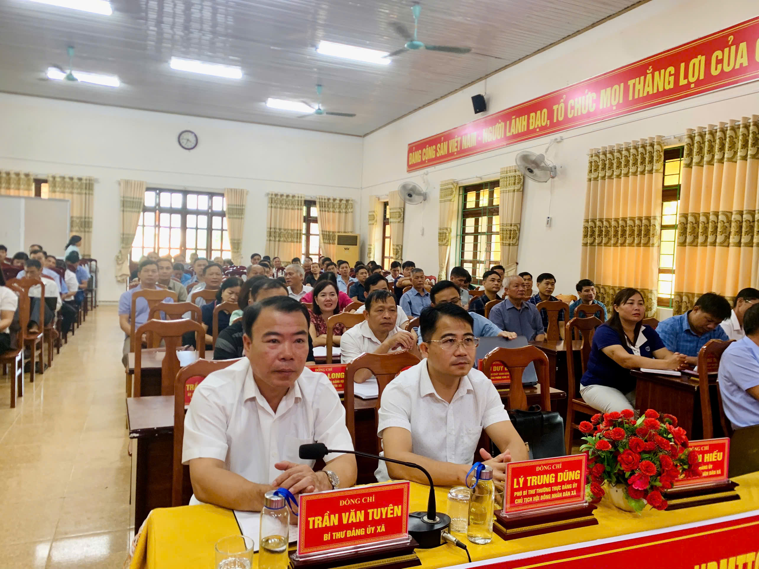 Đồng chí Trần Văn Tuyên, Bí thư Đảng ủy xã; đồng chí Lý Trung Dũng Phó Bí thư Đảng ủy, Chủ tịch HĐND xã dự Hội nghị.
