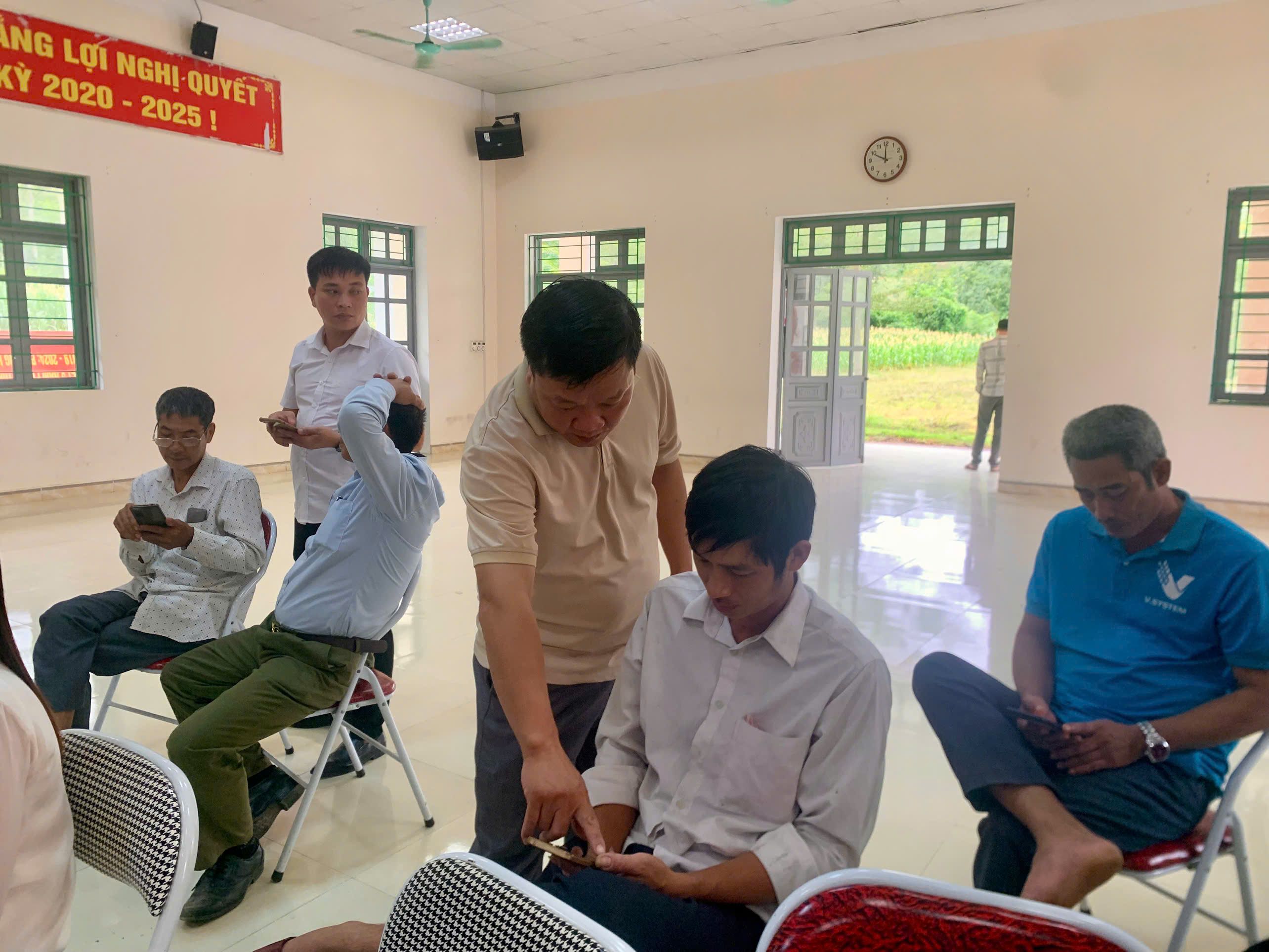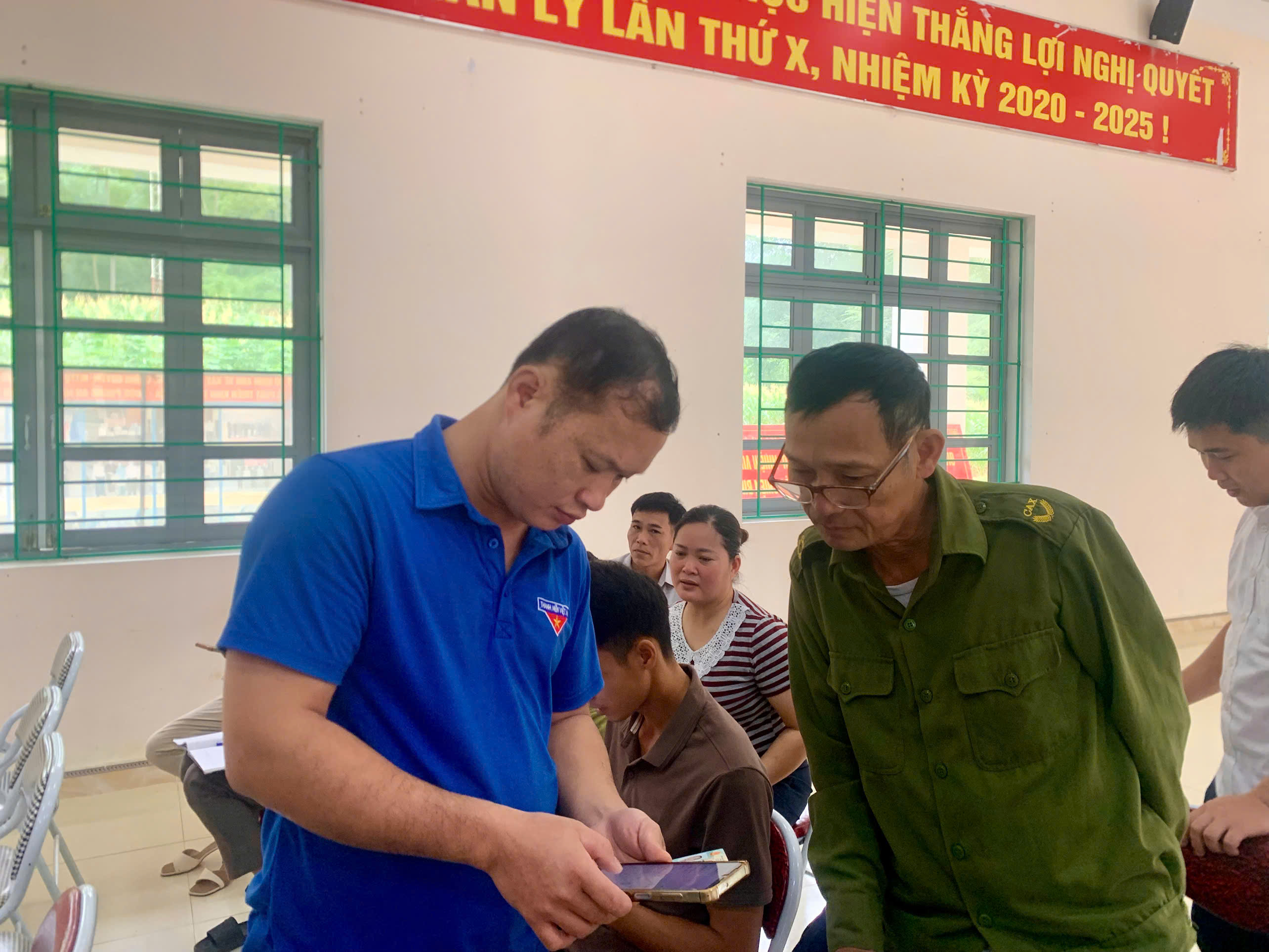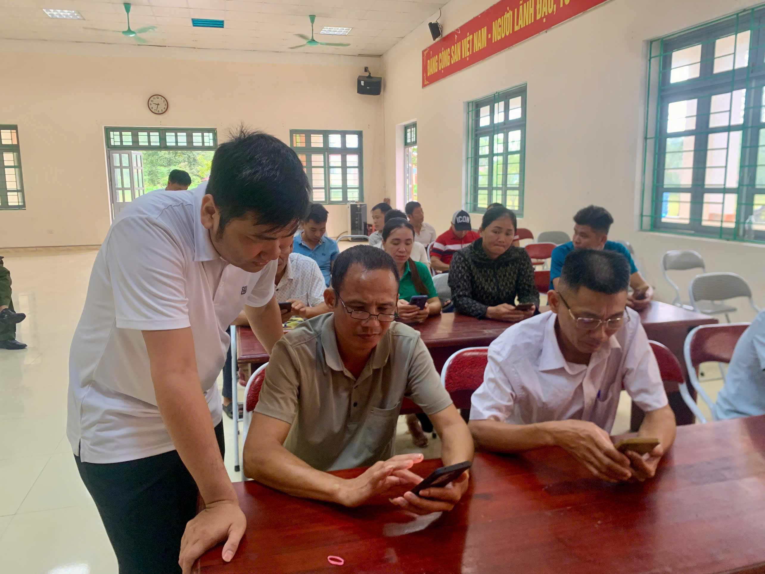 Thành viên tổ công nghệ số cộng đồng xã hướng dẫn học viên.